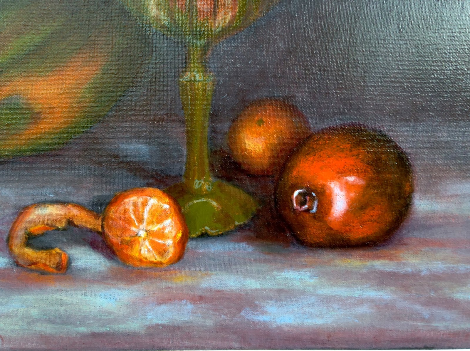 "Tangerines, Papaya and Pomegranate" Oil 16x20in - "Tangerinas, papaya y granada" oleo 50.5 x 40 cm © Sergio A. Ramos, All rights reserved. |
